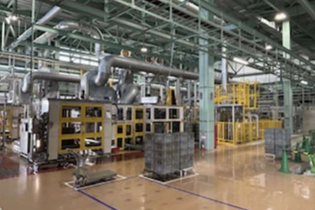 東郷製作所オリジナルのホースクランプ専用熱処理工程は、世界最大級の処理能力を持ち、厚さ3mmの厚板品にも対応可能な構造を備え、排熱の再利用によってカーボンニュートラルに貢献するとともに、AGVによる自動投入・排出やIoTによる現場確認業務の効率化により、省人化と作業ロスの低減を実現しています。