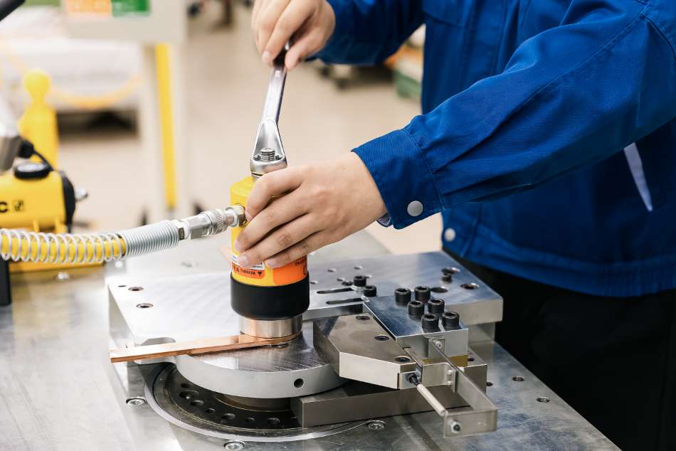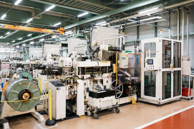 東郷製作所では、ホースクランプの成形から熱処理、検査・梱包までをカバーする自社開発の専用設備を多数導入し、高品質・高効率・省スペース・省人化を追求した生産体制を構築しています。