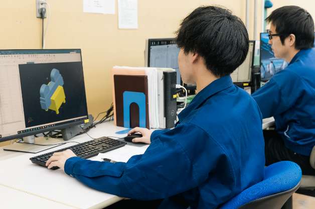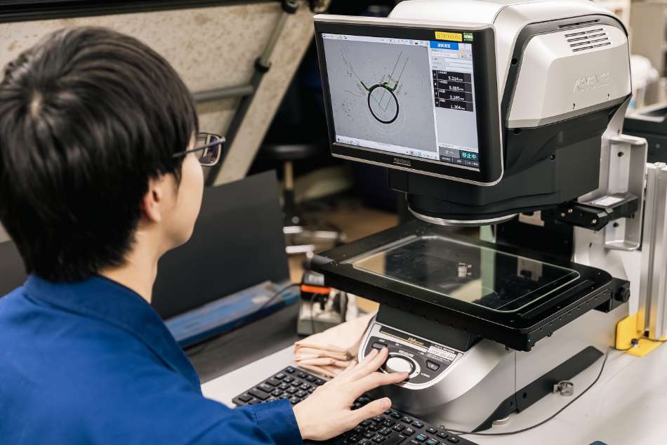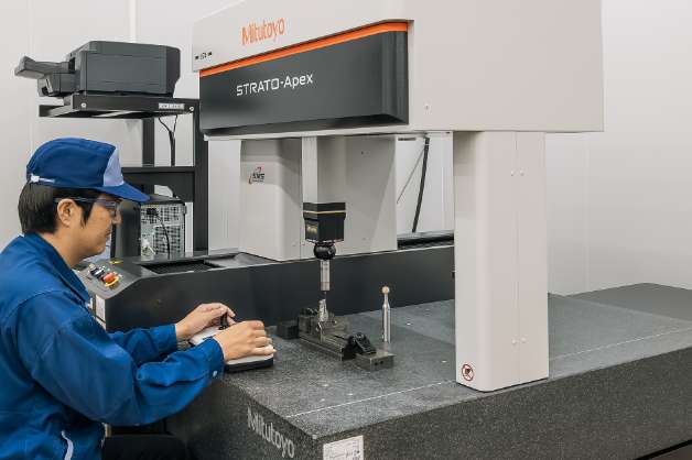 金型図面や3D CADモデルをもとに加工レビューを行い、加工方法を検証。精度・コスト・納期のバランスを考慮しながら、高精度部品を製作しています。製品の品質は金型精度で保証されるため、三次元測定機による部品検査も欠かせません。精密放電ワイヤー加工機、高速マシニングセンタ、放電加工機などを駆使し、精密加工・精密組付けを行うには、高度な技術力、スキル、知識が求められます。