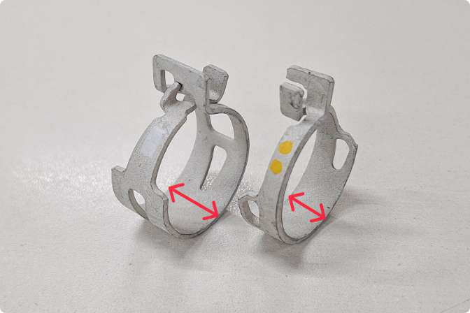 従来のホースクランプに比べて幅を狭く設計した事により、省スペース内の作業性向上と締結部品の費用低減に繋がっています。