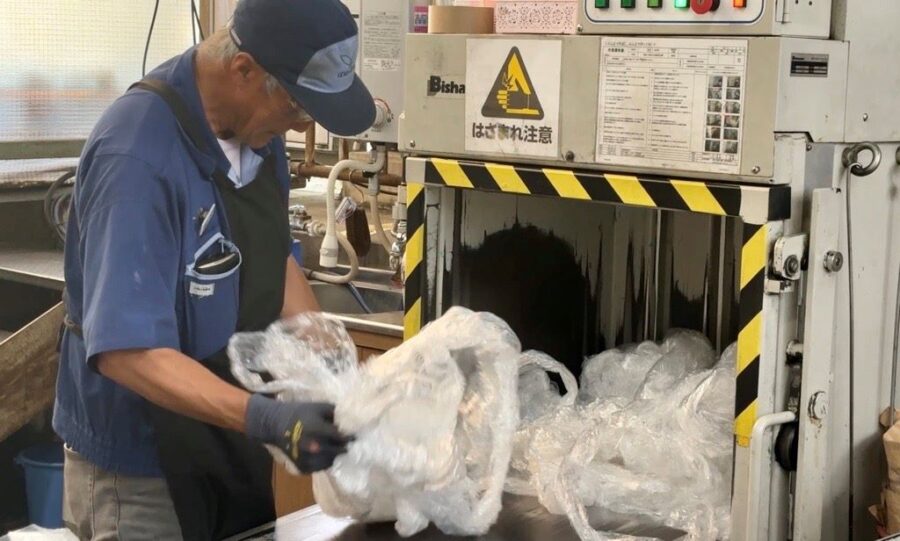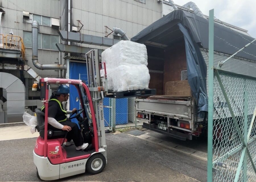 廃プラスチック資源と再生原料で作られた梱包資材の売買契約を結びました。