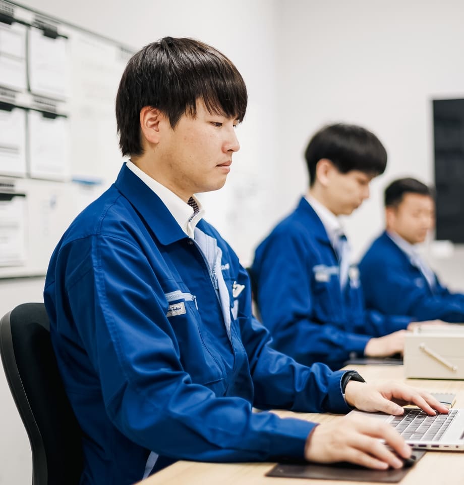 生産企画の最前線会社全体の生産体制案件やプロジェクト案件等、会社の中枢を担う業務に携わることが多いため、会社の利益に直結する業務もあります。責任は重大ですが、長い年月をかけ、無事にプロジェクトを完遂した際は大きなやりがいを感じます。また日々の業務では、部門間の橋渡しとなる調整業務が多いため、会社の人と関わることができる面白さもあります。生産企画課に所属する人数は少ないものの、少数精鋭で一人ひとりが責任をもって業務に取り組んでいます。