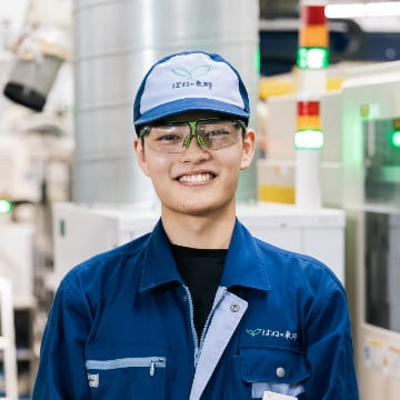 品質を支える樹脂製品の生産のため、射出成形機のオペレーター業務を行っています。射出成形機は工場全体で90台以上ありその内の9~10台を見ています。 製品の品質チェックを昼勤夜勤で計6回実施しており、材料投入、成形機の金型の乗せ替え、完成箱の移し替え作業、機械の異常処置などがあります。 成形機1台で複数の製品を生産する為金型を交換をしなければなりません。機械の種類によって操作方法が変わる為、入社当初は覚えるのが少し大変でした。機械の異常処置や不良品が出来てしまった時など、原因が分からず解決するのに時間がかかってしまう事があり、そういった部分が難しいと感じるところです。