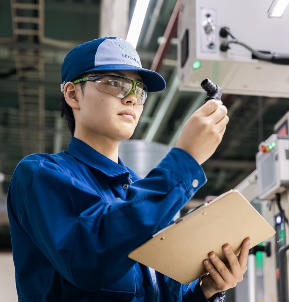 教える立場へ気がつけば、入社5年目になり、後輩も増えてきました。「教わる」立場から「教える」立場に変わっていくのを実感しています。 射出成形作業には国家検定(2級・1級)があり、2年目に射出成形作業検定2級を取得しました。現在は、射出成形作業検定1級を取得する事を目標としています。その為には、金型の仕組みや成形条件等について、より深く学ばなければならないので、積極的に学習していきたいと考えています。さらに、後輩達にその学んだことを教えていき、作業者全体のスキルアップに繋がるよう貢献していきたいです。