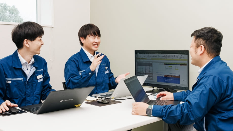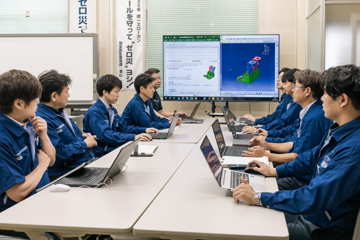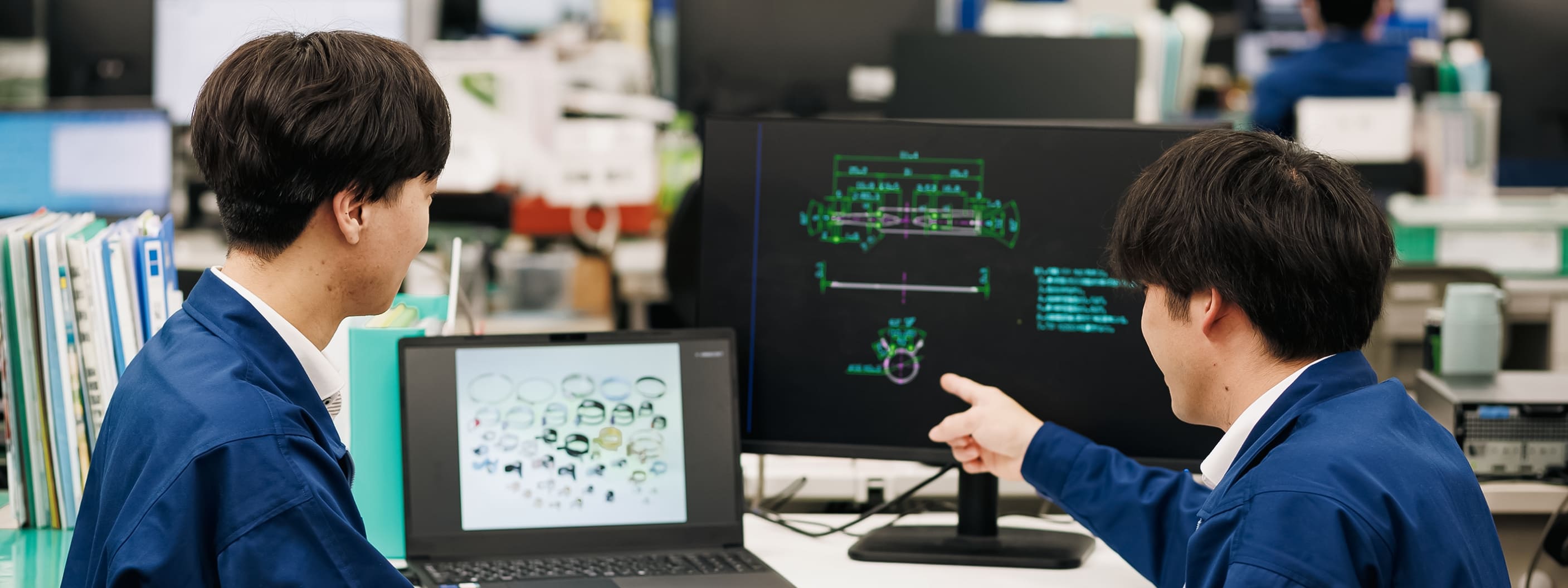 新規製品を生産対応するために、新たな加工・組立手法などの工法開発に取り組んでいます。モノづくりの課題に向き合い『高効率・高精度・低コスト』の実現を目指します。