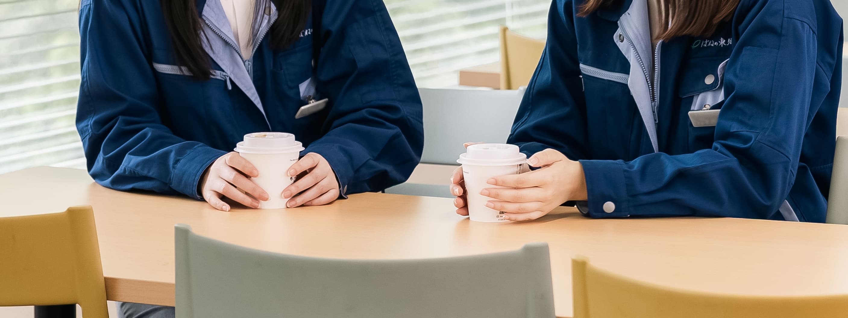 働きやすさをサポートするため、様々な環境を提供しています。制服は無償で貸与し、安全靴は年2回半額補助、保護具は無料で支給しています。腰痛ベルトの補助もあり、健康面のサポートも万全です。また、社有車や事務用品購入サポートも完備。さらに、給茶機やウォーターサーバー、冷蔵庫、電子レンジ、自動販売機(飲料やお菓子等)を設置しており、便利な売店(本社・小坂工場)も利用できます。