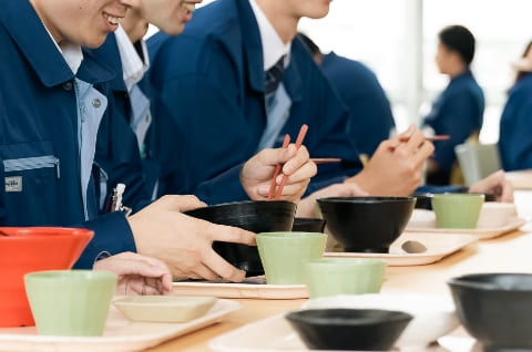 食事補助つきの社員食堂で、手軽に健康的な食事を提供しています