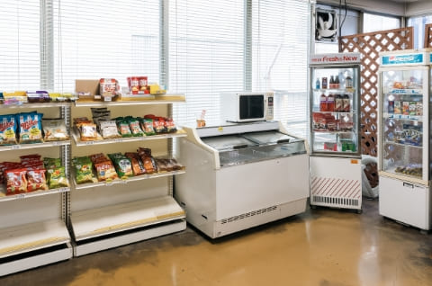 安全靴や保護具の補助に加え、売店など日常を支える設備も整えています