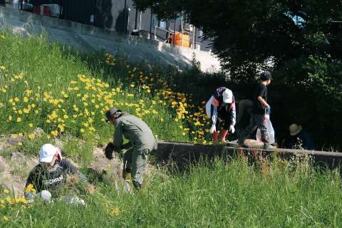 地域の自然環境を守る取り組みとして、外来植物「オオキンケイギク」の駆除活動を定期的に実施しています。この植物は景観を損ねるだけでなく、在来種への影響も大きいため、東郷町役場と連携しながら、継続的な除去作業を行い、生態系の保全に努めています。