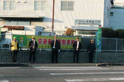 地域の安全と安心を守る取り組みの一環として、定期的に交通安全立哨を実施しています。社員が交代で主要交差点や通学路に立ち、交通安全の呼びかけや見守り活動を行うことで、地域とのつながりを大切にしながら、事故防止と防犯意識の向上に努めています。